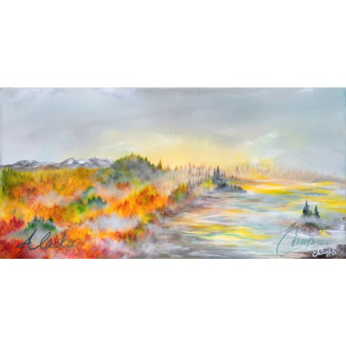 A beautiful sticker depicting fall in Alaska. The design is from an original acrylic painting named "Alaska's Light Amid Fog." With hope, there is always light that surrounds you.