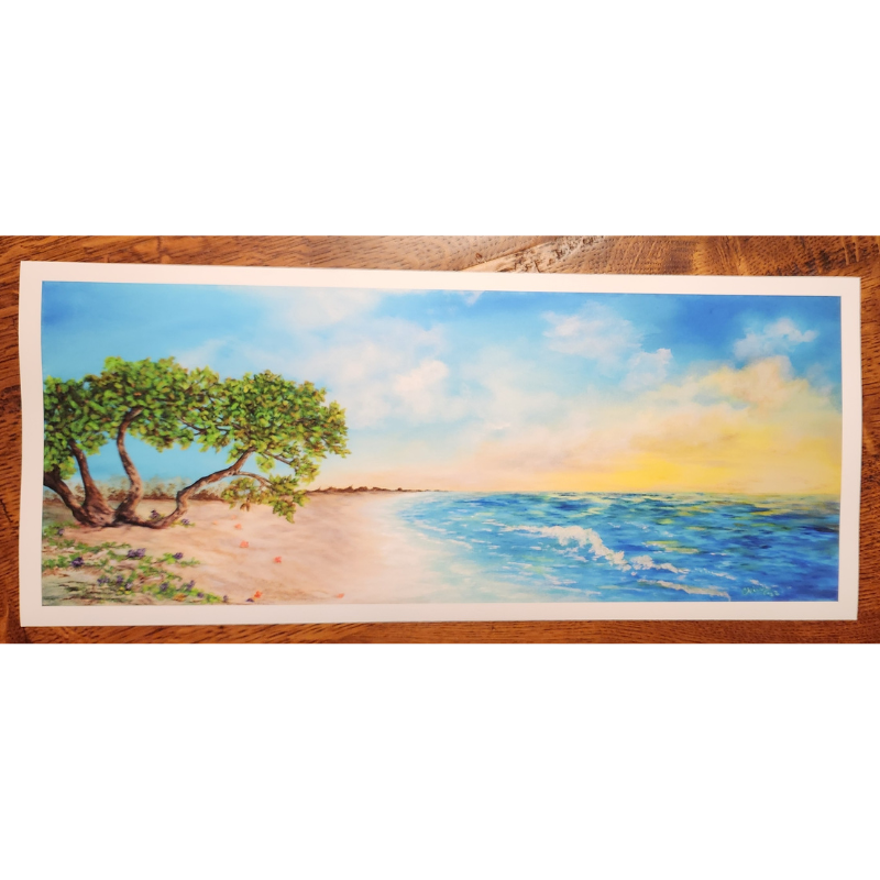 A lovely mix of vibrant colors where water becomes one with land! A print that captures the Aloha Spirit and reminds me of sitting on the beach admiring and being grateful for its beauty.