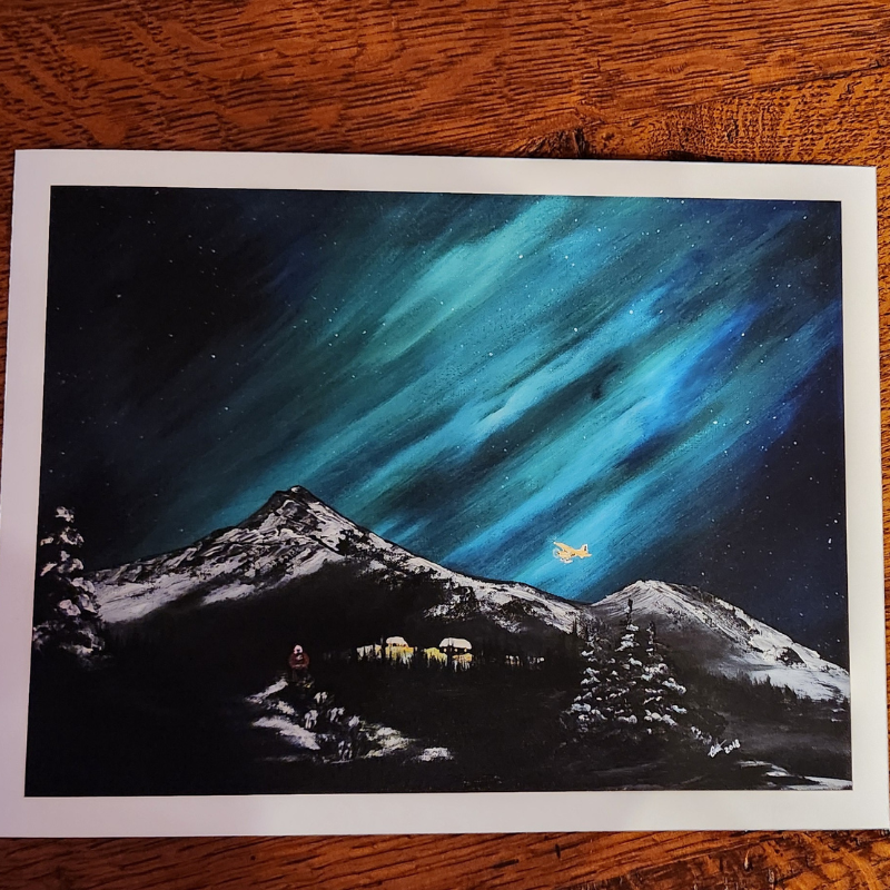 A lovely mix of vibrant colors dancing together! The artwork was featured on the 2018 Iditarod Air Force Fuel Card during the Iditarod in Alaska.