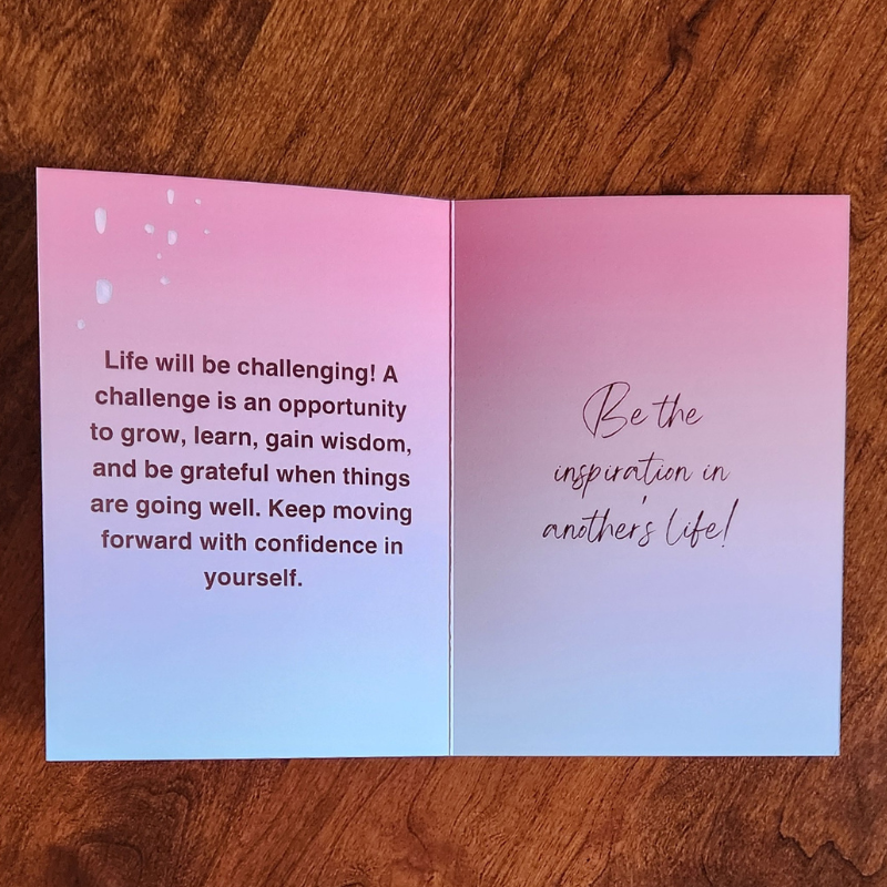 Inside Message: Life will be challenging! A challenge is an opportunity to grow, learn, gain wisdom, and be grateful when things are going well. Keep moving forward with confidence in yourself. Be the inspiration in another's life!