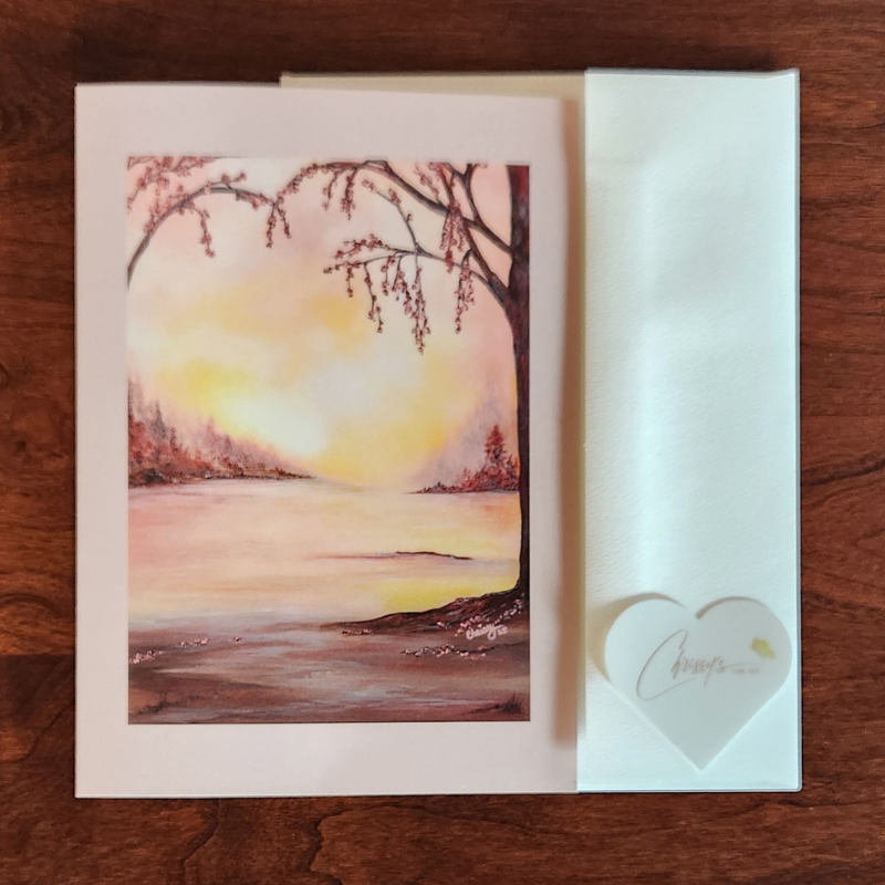 Features a beautiful nature scene from my imagination! The artwork featured in this design was originally hand-painted in acrylics and was digitized for the card design.