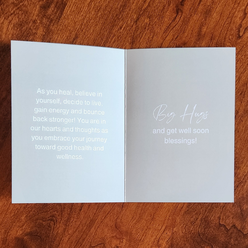 Inside Message: As you heal, believe in yourself, decide to live, gain energy and bounce back stronger! You are in our hearts and thoughts as you embrace your journey toward good health and wellness.