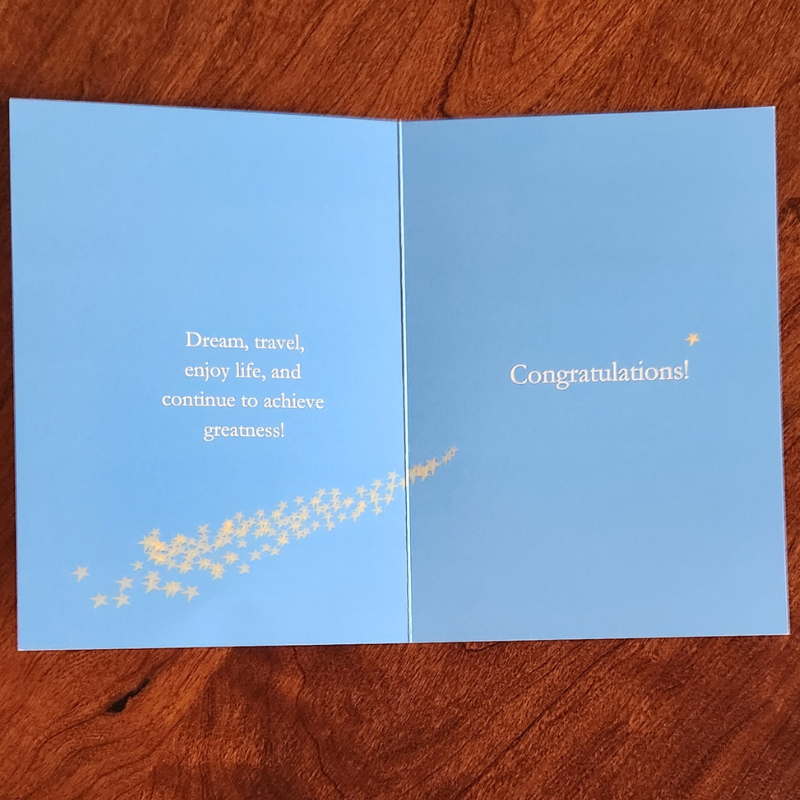 Inside Message: Dream, travel, enjoy life, and continue to achieve greatness! Congratulations!