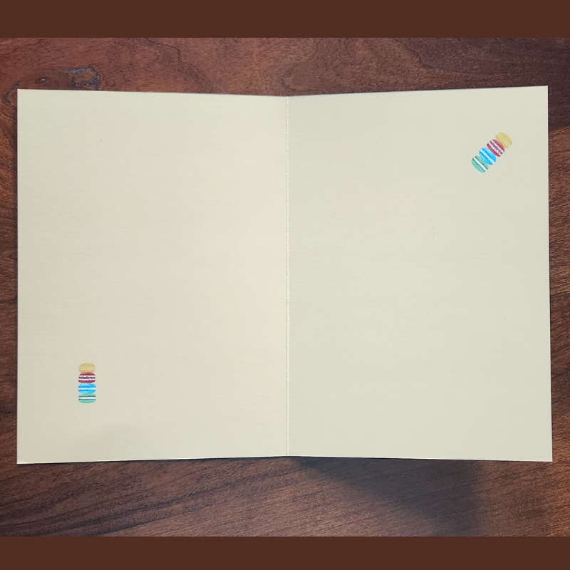 Front features holiday macaroons. The original artwork in this design was free-hand drawn digitally.