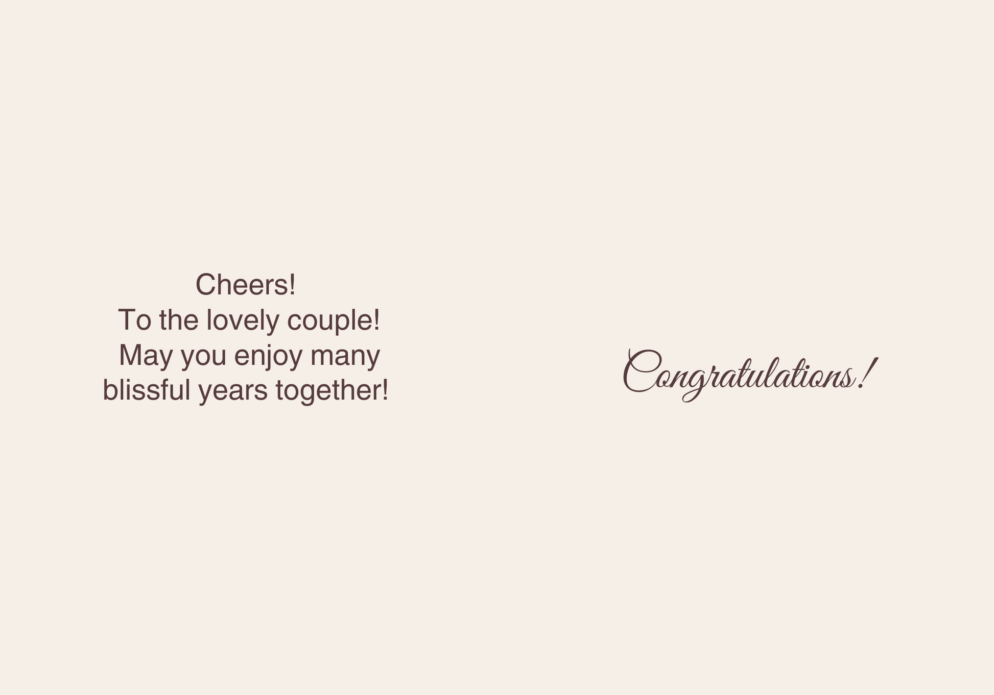 Inside Message: Cheers! To the lovely couple! May you enjoy many blissful years together! Congratulations!