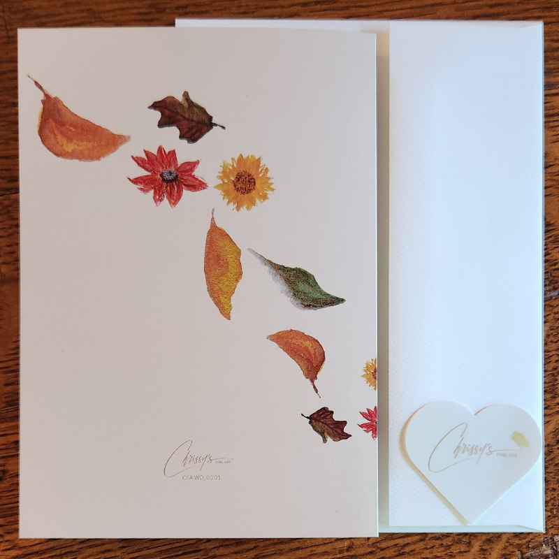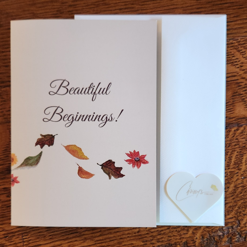Wedding greeting card. Features: Flowers and leaves. The artwork featured in this design was originally hand-painted in watercolor and digitized for the card design.