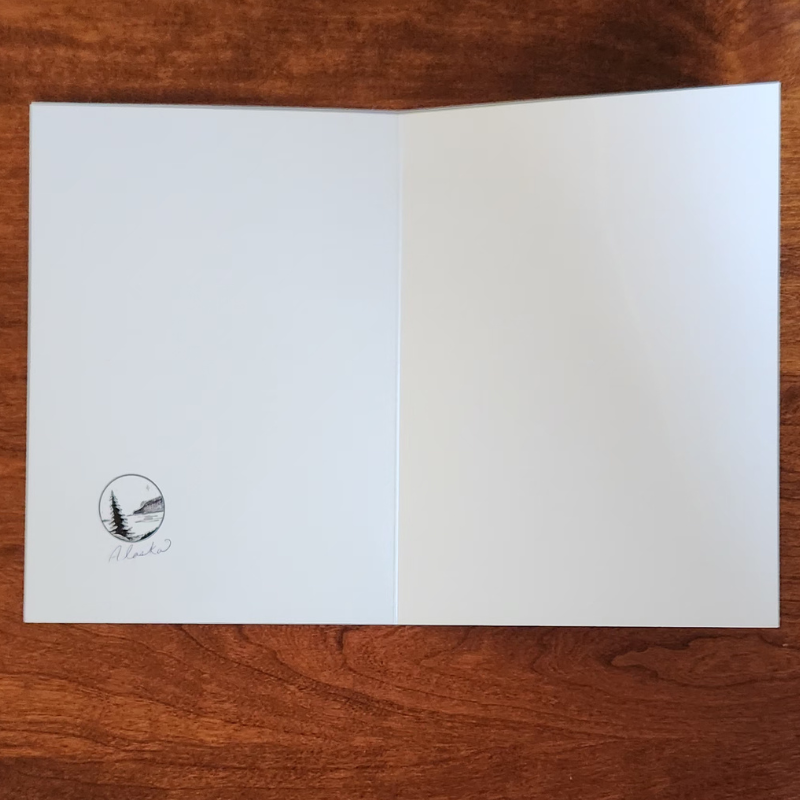 Greeting Card. Features a beautiful evening scene of Beluga Point, Anchorage, AK. The artwork was digitally drawn/created.