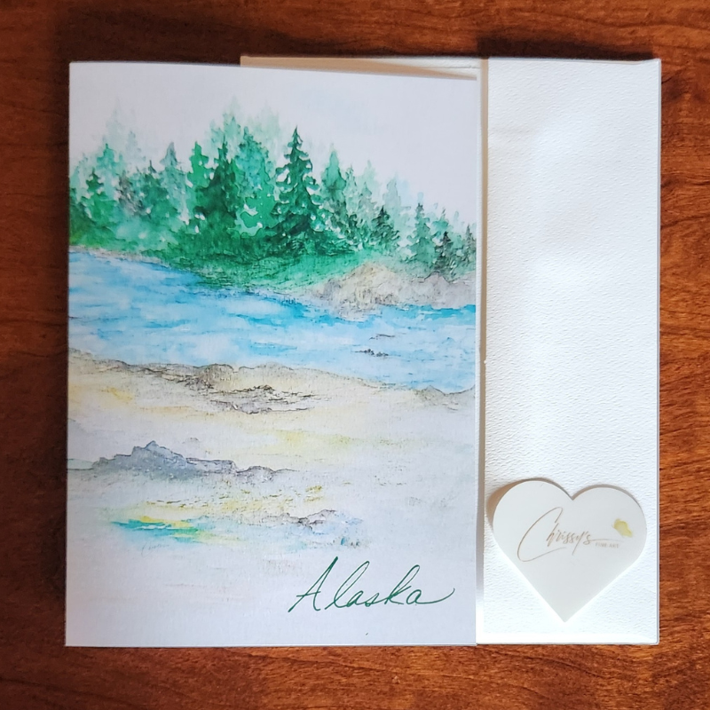 Alaska's Beauty greeting card. Features: a landscape with the Russian River and fireweed. The artwork featured in this design was originally hand painted in watercolor and digitized for the card design.