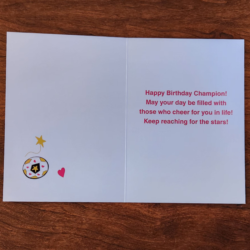 Inside Message: Happy Birthday Champion! May your day be filled with those who cheer for you in life! Keep reaching for the stars!