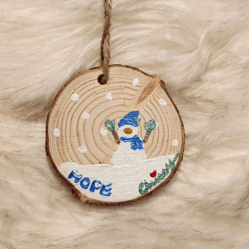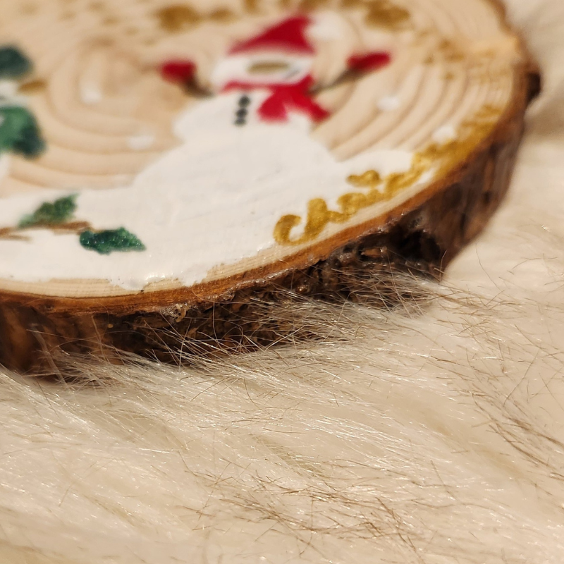 A one-of-a-kind hand-painted ornament of a winter scene on one side with a cute snow gnome and the other featuring a winter scene with two snow gnomes. Enjoy a beautiful work of art hanging from your tree, or gift to another kind soul so they may enjoy it during the holiday season or throughout the year!