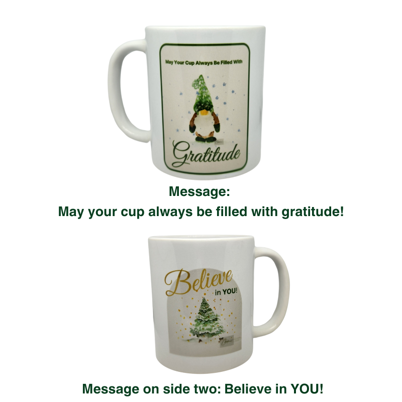 Winter Gnome Gratitude/Believe in YOU! Double Sided Mug